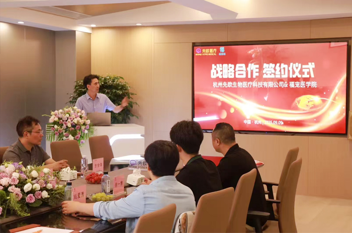 热烈祝贺杭州先欧生物医疗科技有限公司与福宠医学院联合研发中心正式成立!科技赋能生命健康,携手共创宠物医疗新未来!